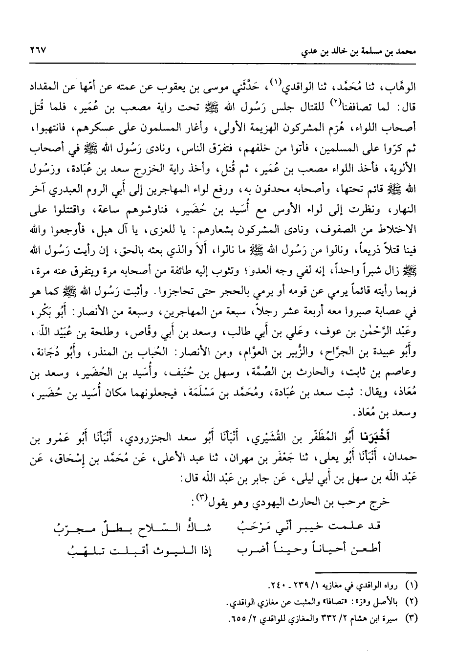 (1) رواه الواقدي في مغازيه 1 / 239 - 240