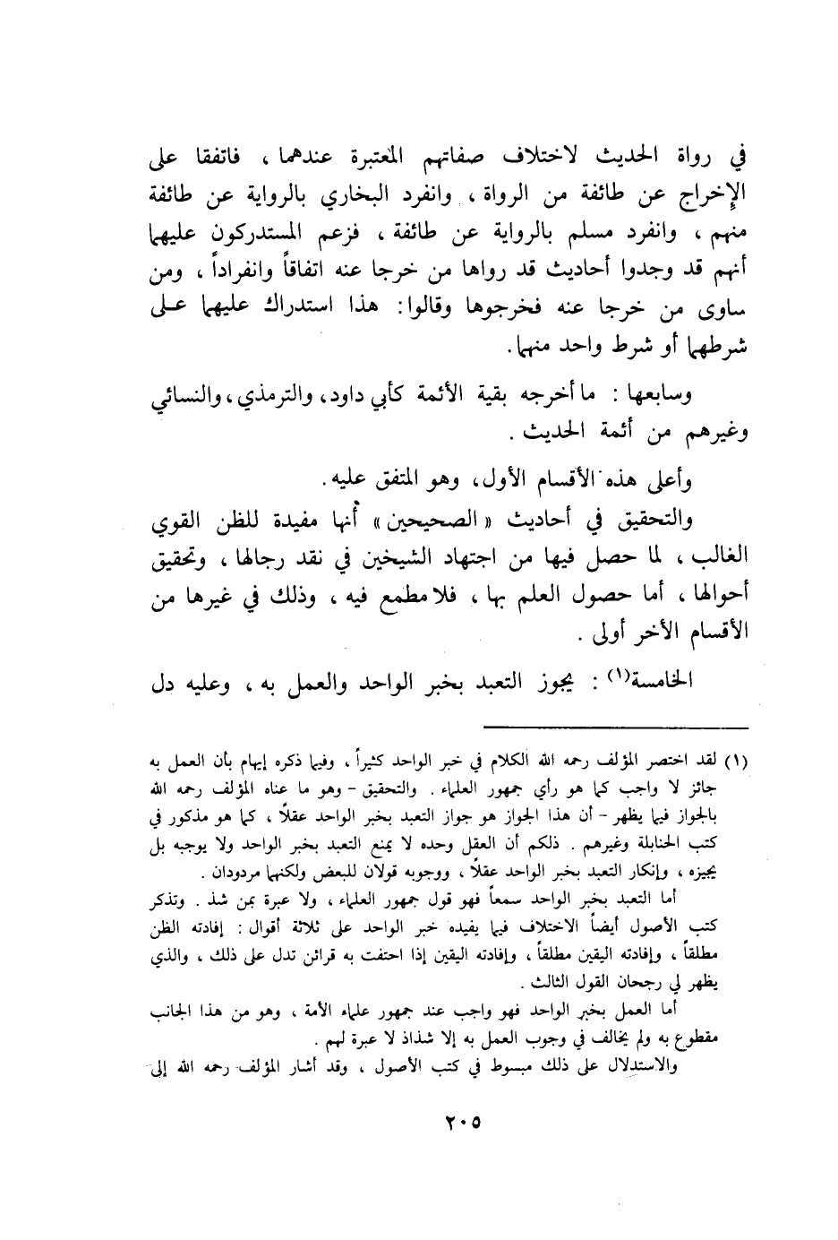 وسابعها مَا أخرجه بَقِيَّة الْأَئِمَّة كَأبي دَاوُد وَالتِّرْمِذِيّ وَالنَّسَائِيّ وَغَيرهم من أَئِمَّة الحَدِيث وَأَعْلَى هَذِه الْأَقْسَام الأول وَهُوَ الْمُتَّفق عَلَيْهِ