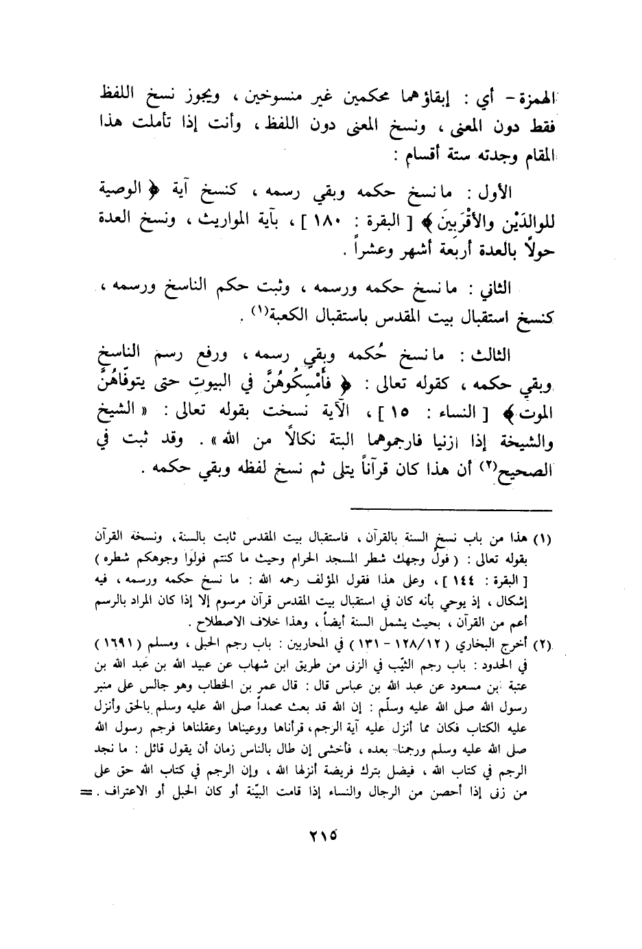 الْهمزَة أَي إبقائهما محكمين غير منسوخين وَيجوز نسخ اللَّفْظ فَقَط دون الْمَعْنى وَنسخ الْمَعْنى دون اللَّفْظ وَأَنت إِذا تَأَمَّلت هَذَا الْمقَام وجدته سِتَّة أَقسَام