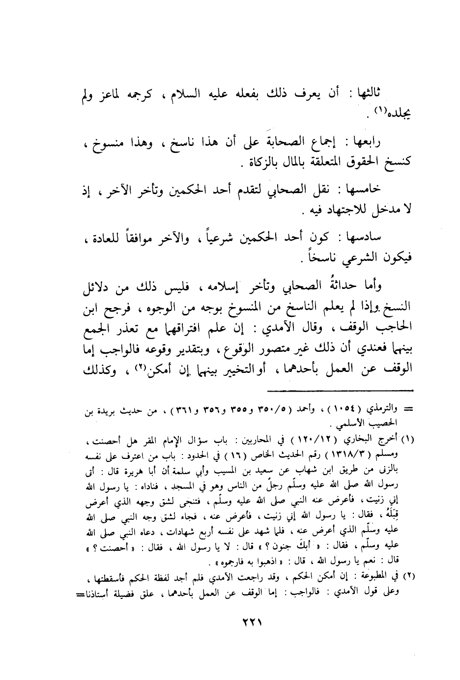 وَثَالِثهَا أَن يعرف ذَلِك بِفِعْلِهِ عَلَيْهِ السَّلَام كرجمه لماعز وَلم يجلده