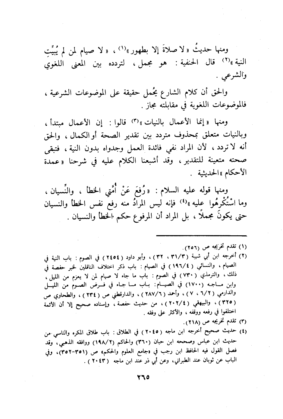 قَالَ الْحَنَفِيَّة هُوَ مُجمل لتردده بَين الْمَعْنى اللّغَوِيّ والشرعي وَالْحق أَن كَلَام الشَّارِع يحمل حَقِيقَة على الموضوعات الشَّرْعِيَّة فالموضوعات اللُّغَوِيَّة فِي مُقَابلَته مجَاز