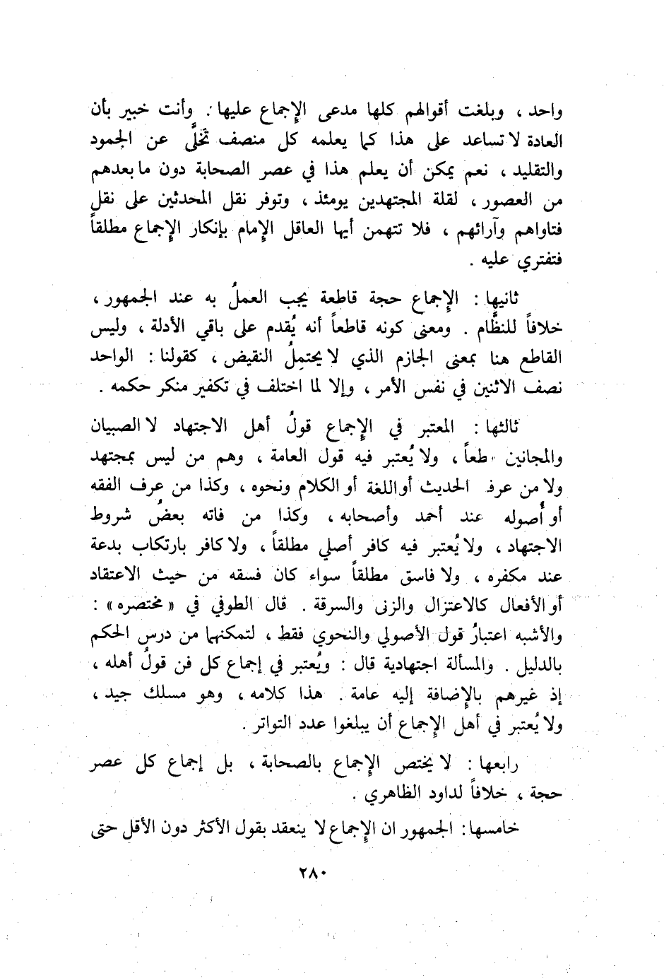 رَابِعهَا لَا يخْتَص الْإِجْمَاع بالصحابة بل إِجْمَاع كل عصر حجَّة خلافًا لداود الظَّاهِرِيّ