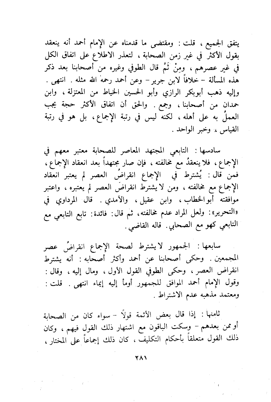 وَمن ثمَّ قَالَ الطوفي وَغَيره من أَصْحَابنَا بعد ذكر هَذِه الْمَسْأَلَة خلافًا لِابْنِ جرير وَعَن أَحْمد رَحمَه الله مثله انْتهى