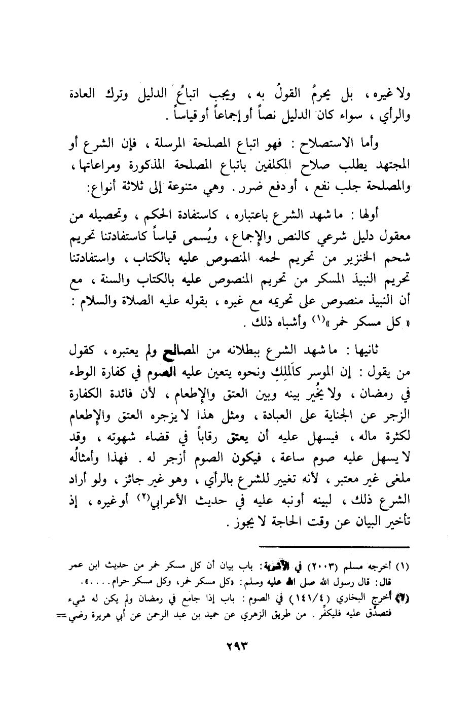 ثَانِيهَا مَا شهد الشَّرْع بِبُطْلَانِهِ من المصلح وَلم يعتبره كَقَوْل من يَقُول إِن الْمُوسر كالملك وَنَحْوه يتَعَيَّن عَلَيْهِ الصَّوْم فِي كَفَّارَة الوطىء فِي رَمَضَان وَلَا يُخَيّر بَينه وَبَين الْعتْق وَالْإِطْعَام لِأَن فَائِدَة الْكَفَّارَة الزّجر عَن الْجِنَايَة على الْعِبَادَة وَمثل هَذَا لَا يزجره الْعتْق وَالْإِطْعَام لِكَثْرَة مَا لَهُ فيسهل عَلَيْهِ أَن يعْتق رقابا فِي قَضَاء شَهْوَته وَقد لَا يسهل عَلَيْهِ صَوْم سَاعَة فَيكون الصَّوْم أزْجر لَهُ فَهَذَا وَأَمْثَاله ملغي غير مُعْتَبر لِأَنَّهُ تَغْيِير للشَّرْع بِالرَّأْيِ وَهُوَ غير جَائِز وَلَو أَرَادَ الشَّرْع ذَلِك لبينه أَو نبه عَلَيْهِ فِي حَدِيث الْأَعرَابِي أَو غَيره إِذْ تَأْخِير الْبَيَان عَن وَقت الْحَاجة لَا يجوز