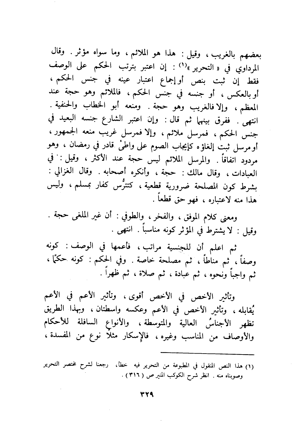 بَعضهم بالغريب وَقيل هَذَا هُوَ الملائم وَمَا سواهُ مُؤثر وَقَالَ المرداوي فِي التَّحْرِير أَن اعْتبر بترتب الحكم على الْوَصْف فَقَط