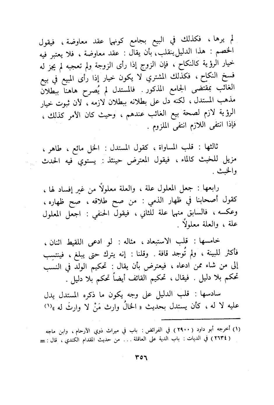 سادسها قلب الدَّلِيل على وَجه يكون مَا ذكره الْمُسْتَدلّ يدل عَلَيْهِ لَا لَهُ كَأَن يسْتَدلّ بِحَدِيث الْخَال وَارِث من لَا وَارِث لَهُ