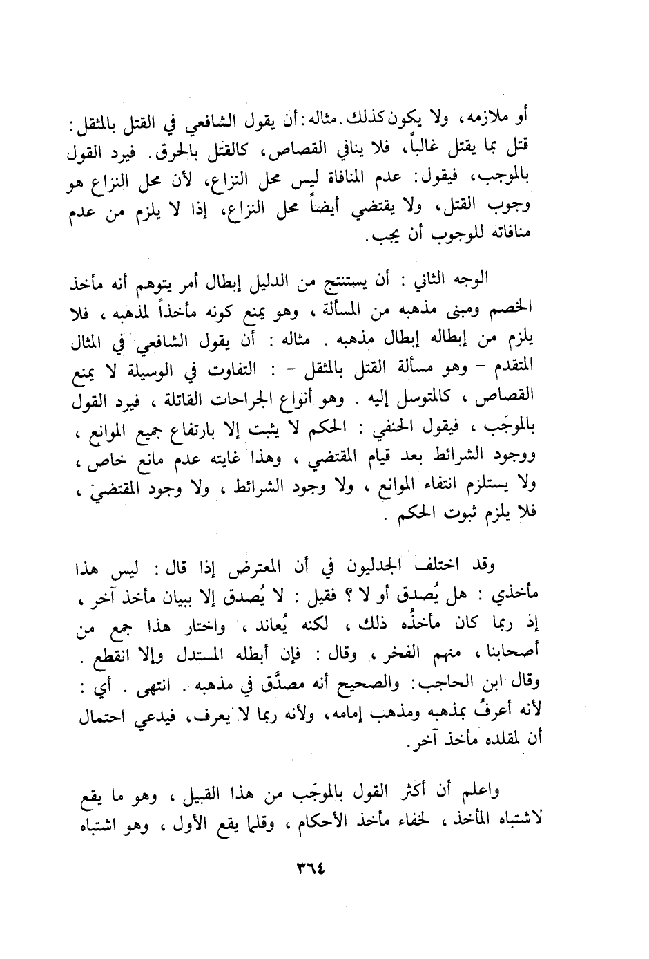 الْوَجْه الثَّانِي أَن يستنتج من الدَّلِيل إبِْطَال أَمر يتَوَهَّم أَنه مَأْخَذ الْخصم ومبني مذْهبه فِي الْمَسْأَلَة وَهُوَ يمْنَع كَونه مأخذا لمذهبه فَلَا يلْزم من إِبْطَاله إبِْطَال مذْهبه
