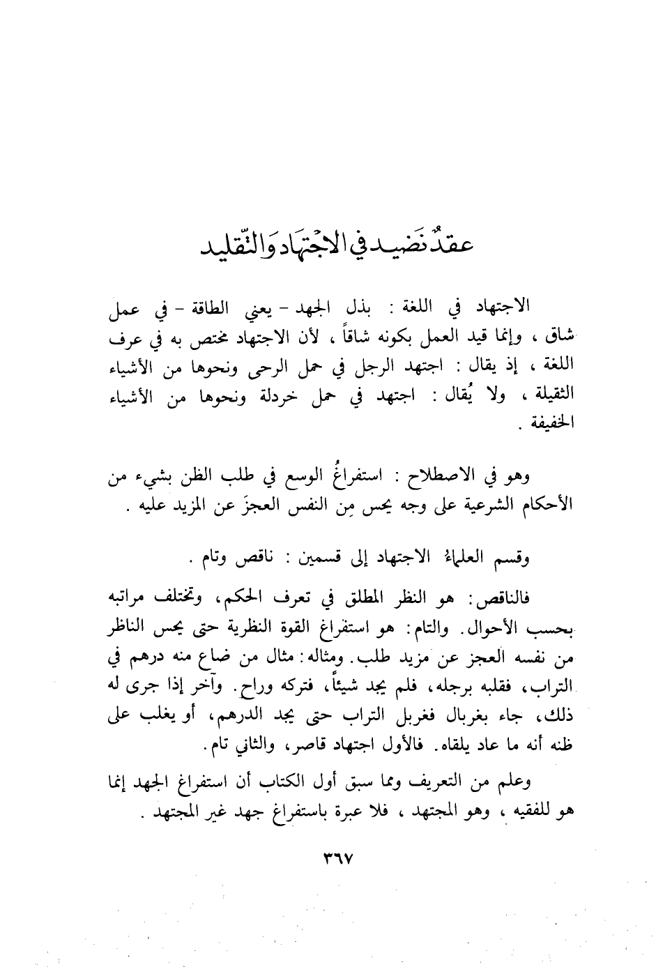 وَقسم الْعلمَاء الِاجْتِهَاد إِلَى قسمَيْنِ نَاقص وتام