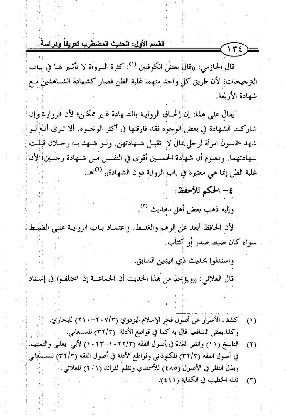 قال الحازمي: "قال بعض الكوفيين1: كثرة الرواة لا تأثير لها في باب الترجيحات؛ لأن طريق كل واحد منهما غلبة الظن فصار كشهادة الشاهدين مع شهادة الأربعة.