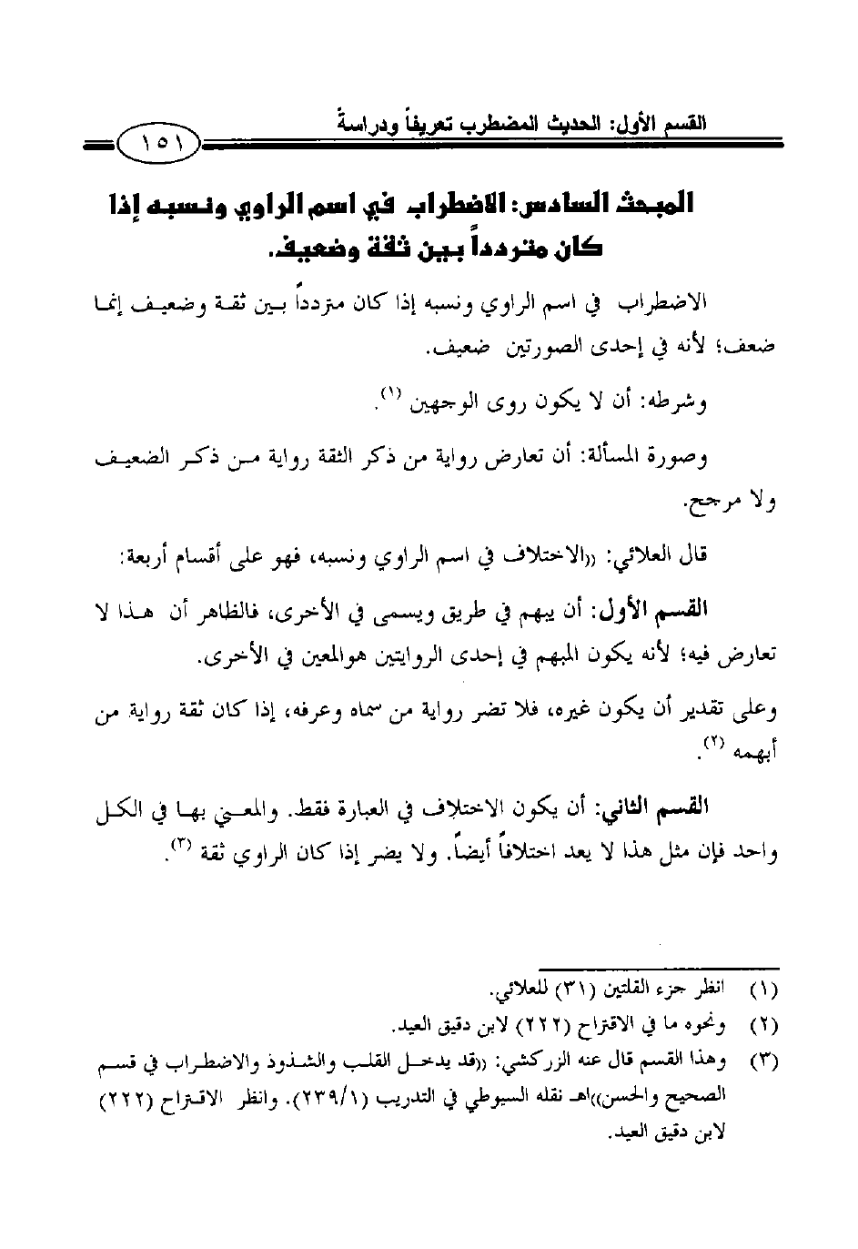 3 وهذا القسم قال عنه الزركشي: "قد يدخل القلب والشذوذ والاضطراب في قسم الصحيح والحسن"اهـ نقله السيوطي في التدريب (1/239) . وانظر الاقتراح (222) لابن دقيق العيد.