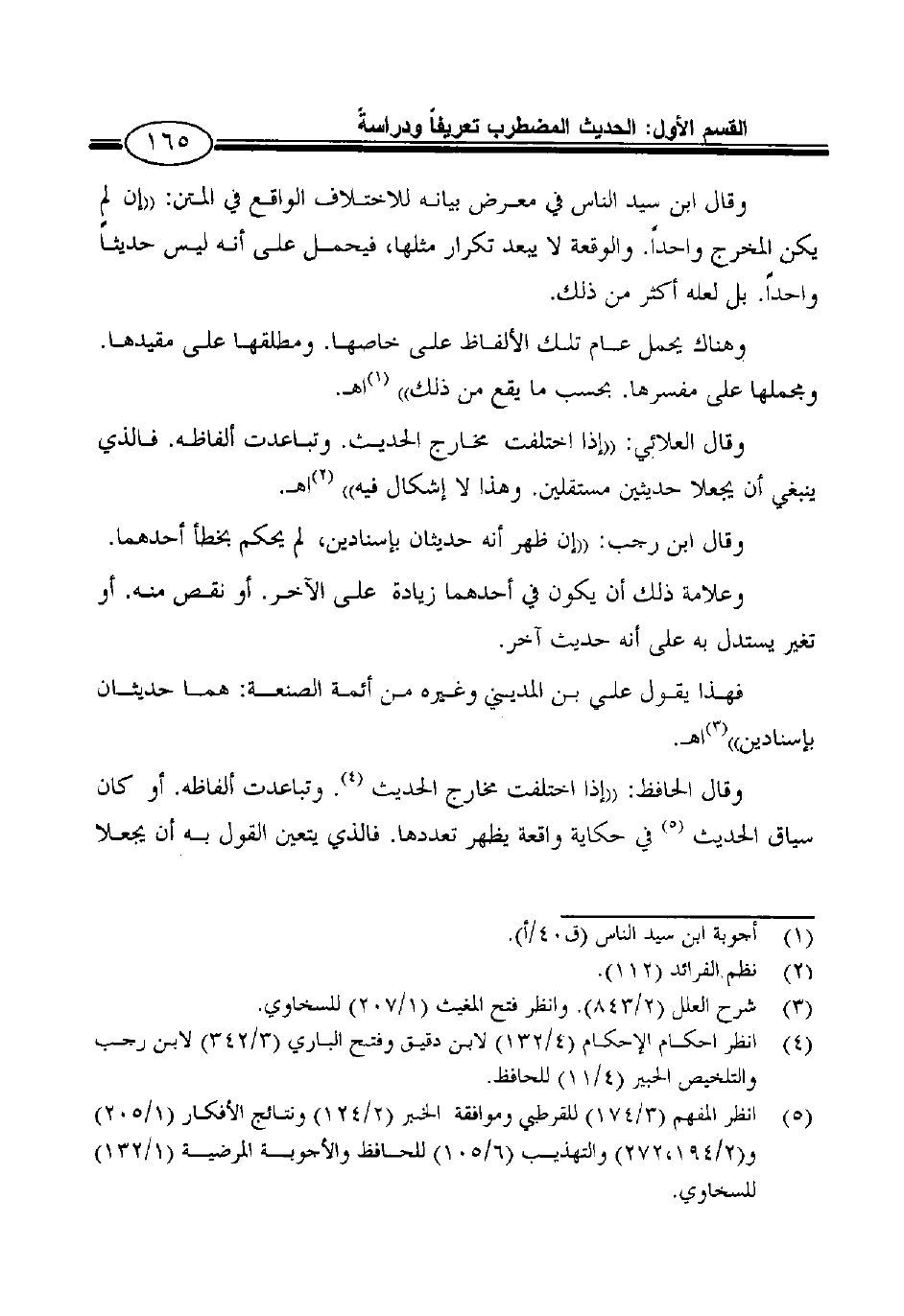5 انظر المفهم (3/174) للقرطبي وموافقة الخبر (2/124) ونتائج الأفكار (1/205) و (2/194،272) والتهذيب (6/105) للحافظ والأجوبة المرضية (1/132) للسخاوي.
