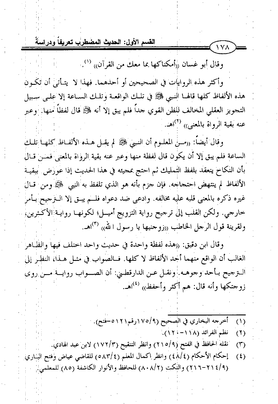 4 إحكام الأحكام (4/48) وانظر اكمال المعلم (4/583) للقاضي عياض وفتح الباري (9/214- 216) والنكت (2/808) للحافظ والأنوار الكاشفة (85) للمعلمي.