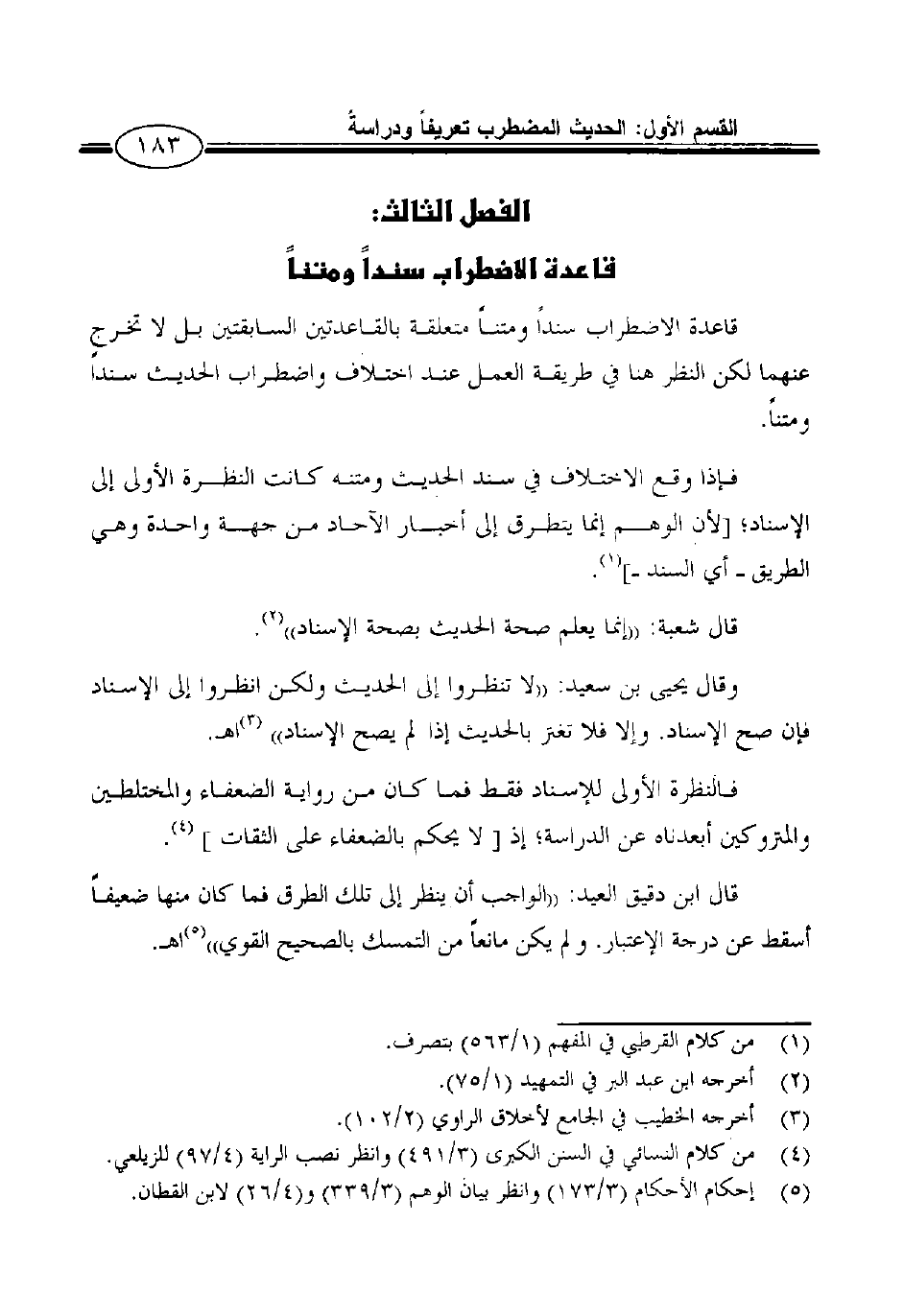 الفصل الثالث: قاعدة الاضطراب سنداً ومتناً