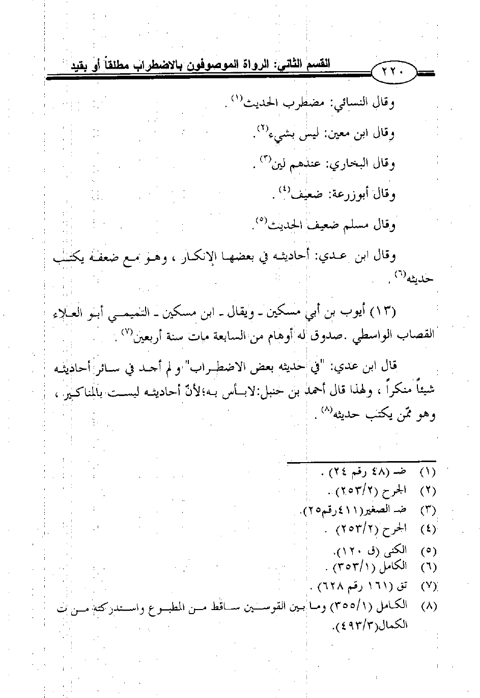 (13) أيوب بن أبي مسكين ويقال ابن مسكين التميمي أبو العلاء القصاب الواسطي. صدوق له أوهام من السابعة مات سنة أربعين7.