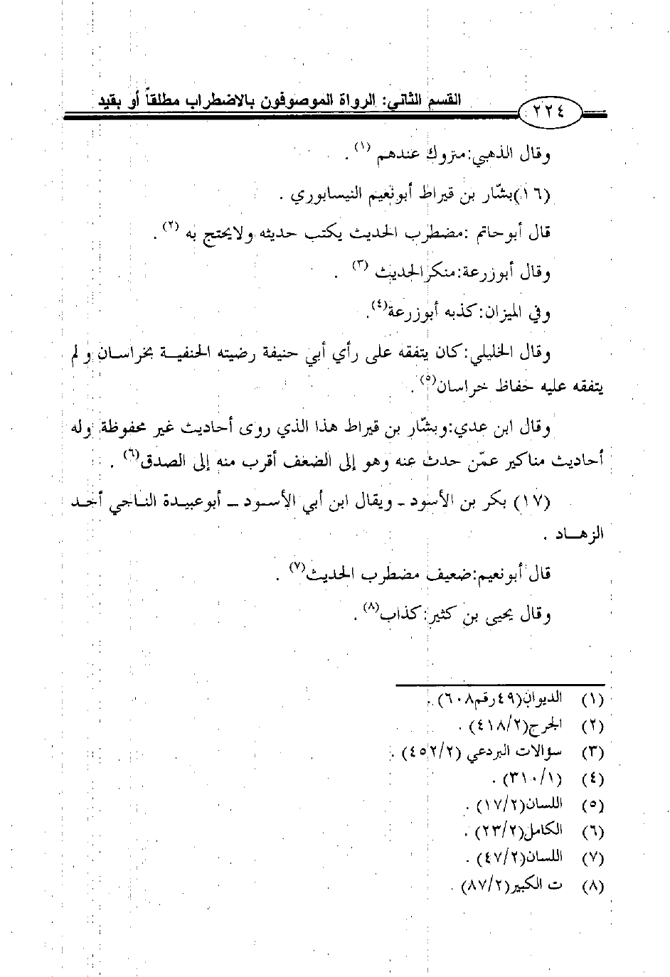 وقال ابن عدي: وبشّار بن قيراط هذاالذي روى أحاديث غير محفوظة وله أحاديث مناكير عمّن حدث عنه وهو إلى الضعف أقرب منه إلى الصدق6.