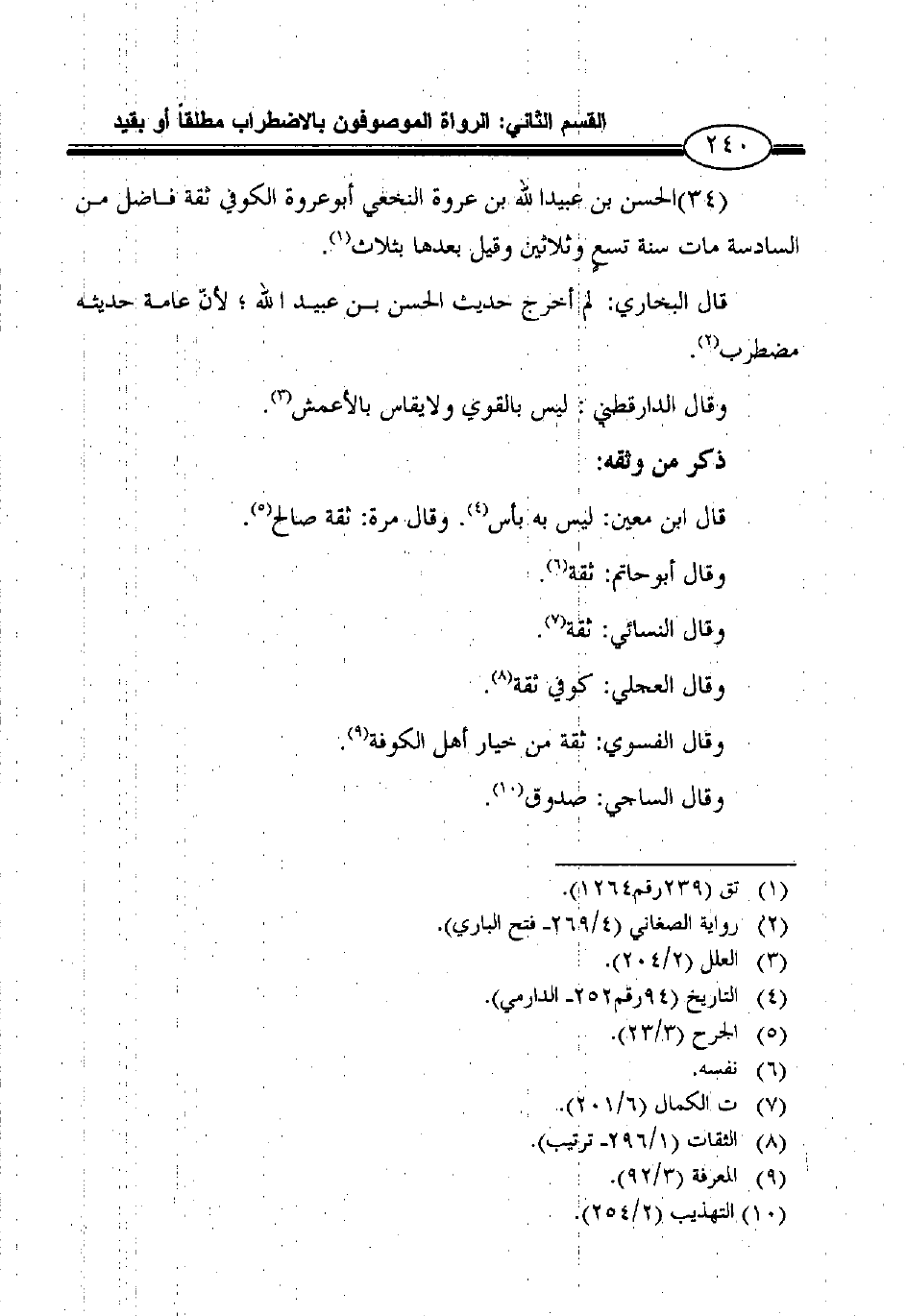 (34) الحسن بن عبيد الله بن عروة النخعي أبوعروة الكوفي ثقة فاضل من السادسة مات سنة تسعٍ وثلاثين وقيل بعدها بثلاث1.