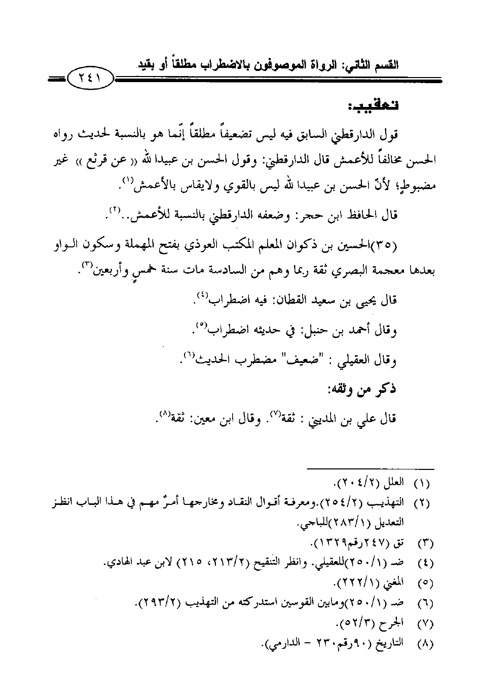 قال الحافظ ابن حجر: وضعفه الدارقطني بالنسبة للأعمش..2.