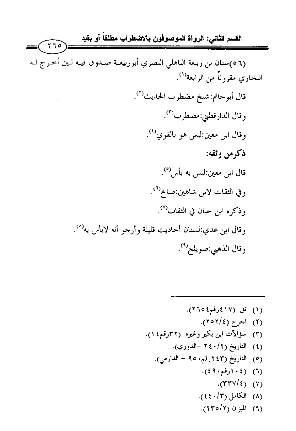 (56) سنان بن ربيعة الباهلي البصري أبوربيعة صدوق فيه لين أخرج له البخاري مقروناً من الرابعة1.