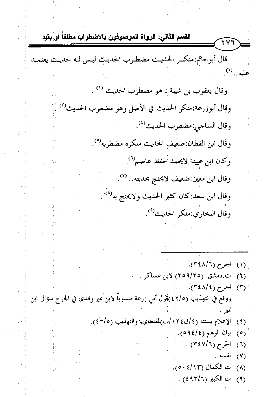 قال أبوحاتم: منكر الحديث مضطرب الحديث ليس له حديث يعتمد عليه..1.