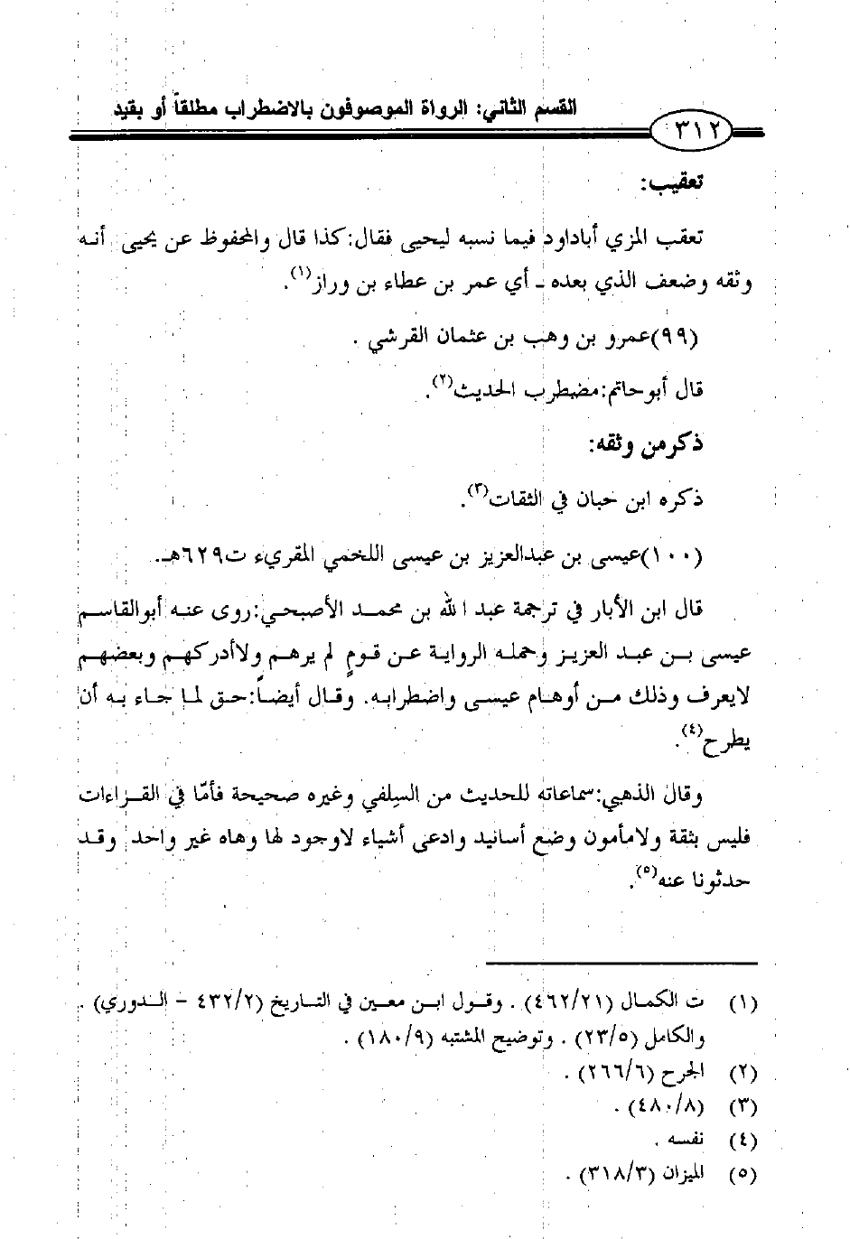 1 ت الكمال (21/462) . وقول ابن معين في التاريخ (2/432 - الدوري) . والكامل (5/23) . وتوضيح المشتبه (9/180) .