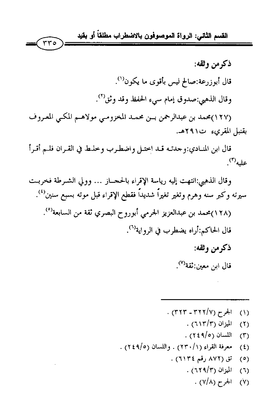 1 الجرح (7/322 ـ 323) .