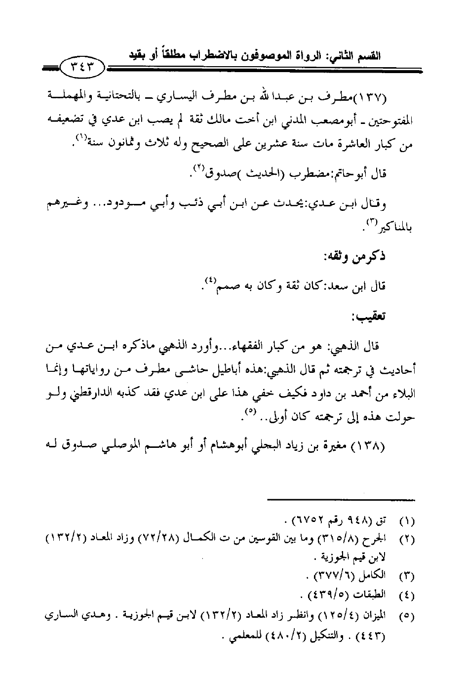 5 الميزان (4/125) وانظر زاد المعاد (2/132) لابن قيم الجوزية. وهدي الساري (443) . والتنكيل (2/480) للمعلمي.