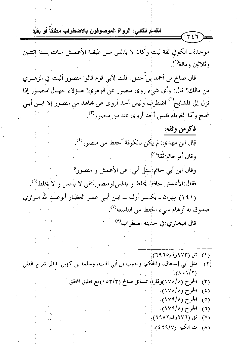 قال ابن مهدي: لم يكن بالكوفة أحفظ من منصور4.