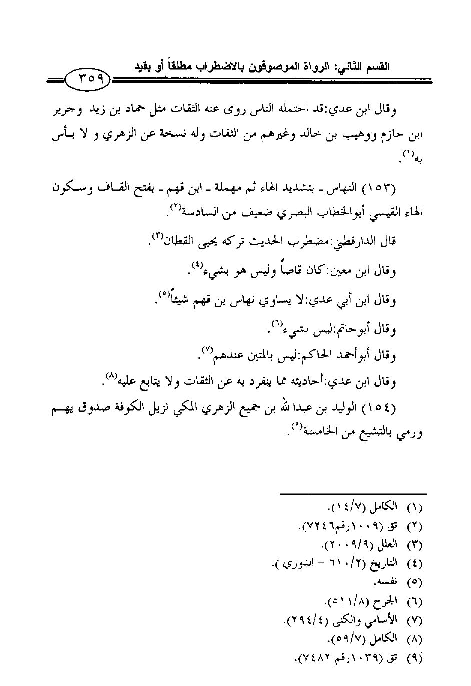 (154) الوليد بن عبد الله بن جميع الزهري المكي نزيل الكوفة صدوق يهم ورمي بالتشيع من الخامسة9.