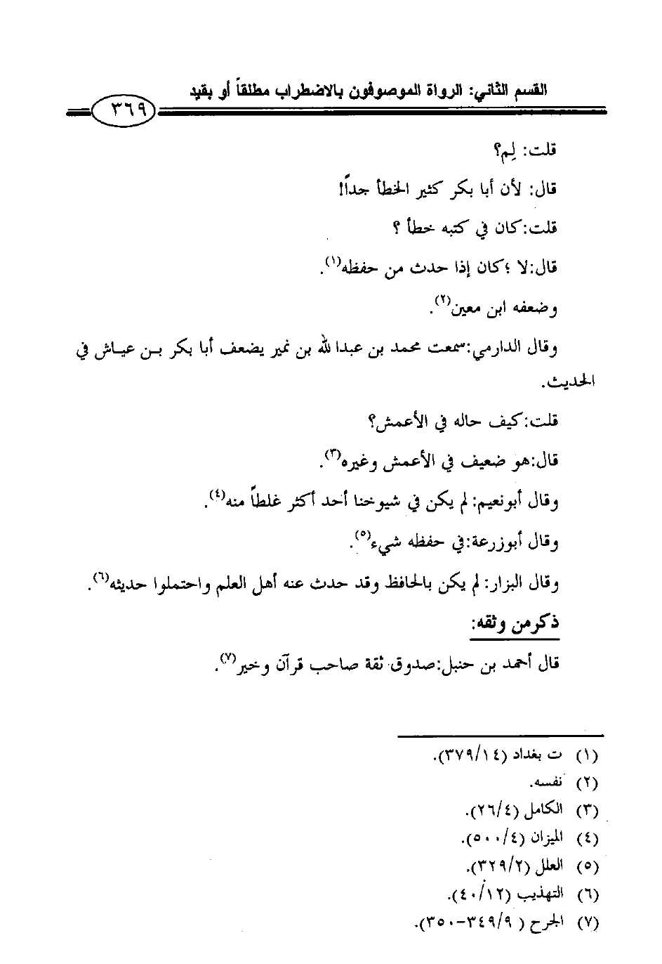 7 الجرح (9/349- 350) .