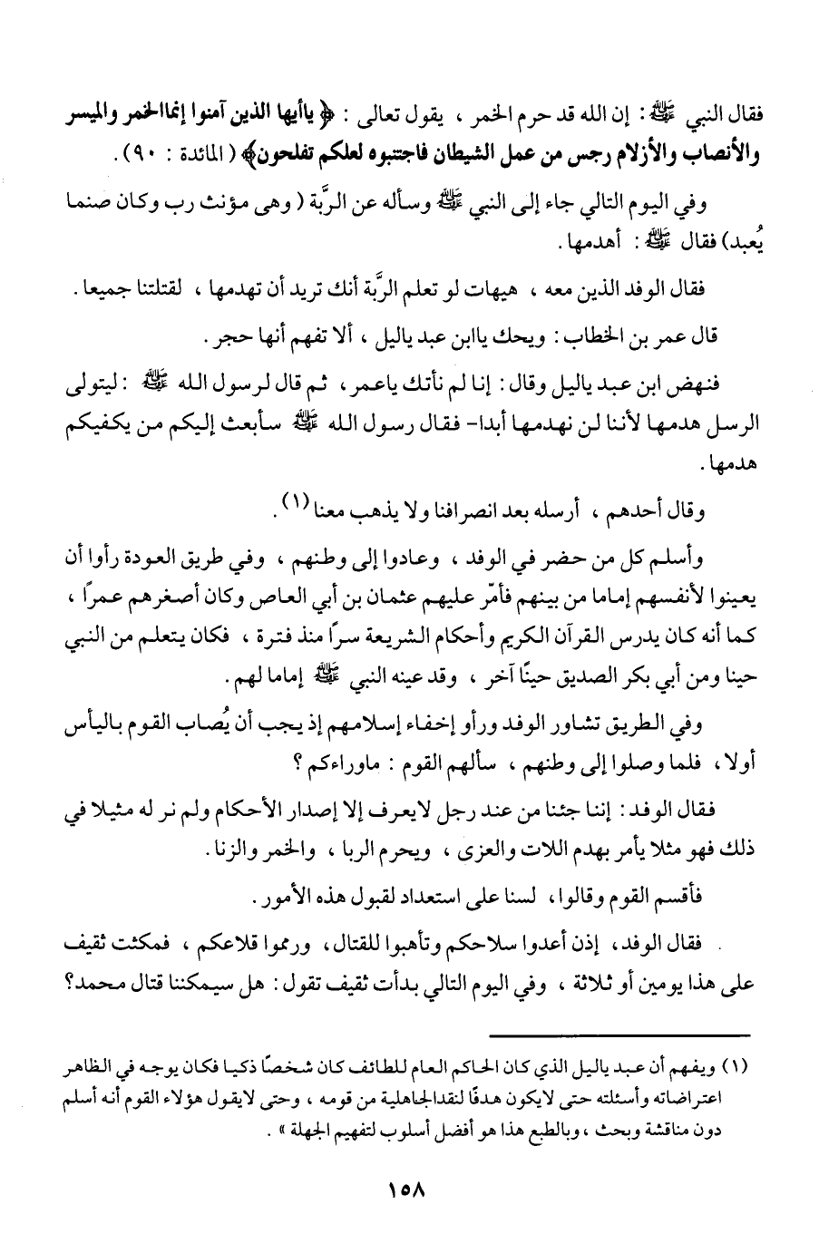 فنهض ابن عبد ياليل وقال: إنا لم نأتك يا عمر، ثم قال لرسول الله - صلى الله عليه وسلم -: ليتولى الرسل هدمها لأننا لن نهدمها أبدا - فقال رسول الله - صلى الله عليه وسلم - سأبعث إليكم من يكفيكم هدمها.