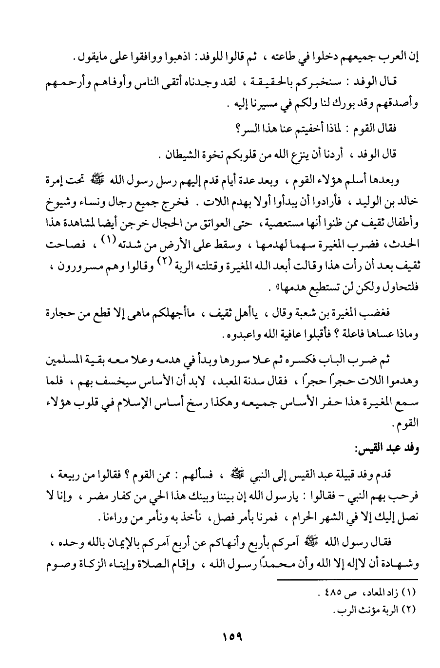 إن العرب جميعهم دخلوا في طاعته، ثم قالوا للوفد: اذهبوا ووافقوا على ما يقول.