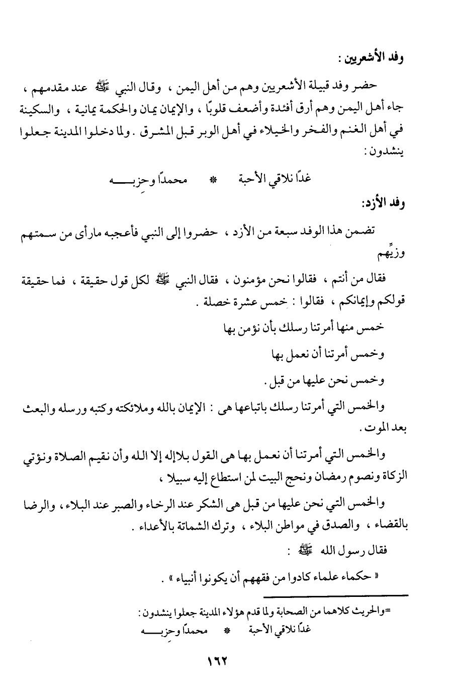 فقال من أنتم، فقالوا نحن مؤمنون، فقال النبي - صلى الله عليه وسلم - لكل قول حقيقة، فما حقيقة قولكم وإيمانكم، فقالوا: خمس عشرة خصلة.