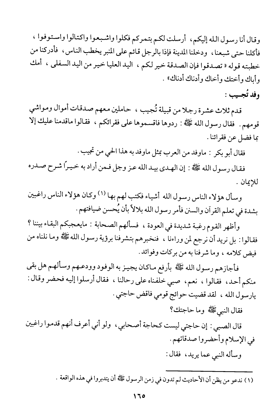 فأجازهم رسول الله - صلى الله عليه وسلم - بأرفع ما كان يجيز به الوفود وودعهم وسألهم هل بقي منكم أحد، فقالوا، نعم، صبي خلفناه على رحالنا، فقال أرسلوا إليه فحضر وقال: يا رسول الله، لقد قضيت حوائج قومي فاقض حاجتي.