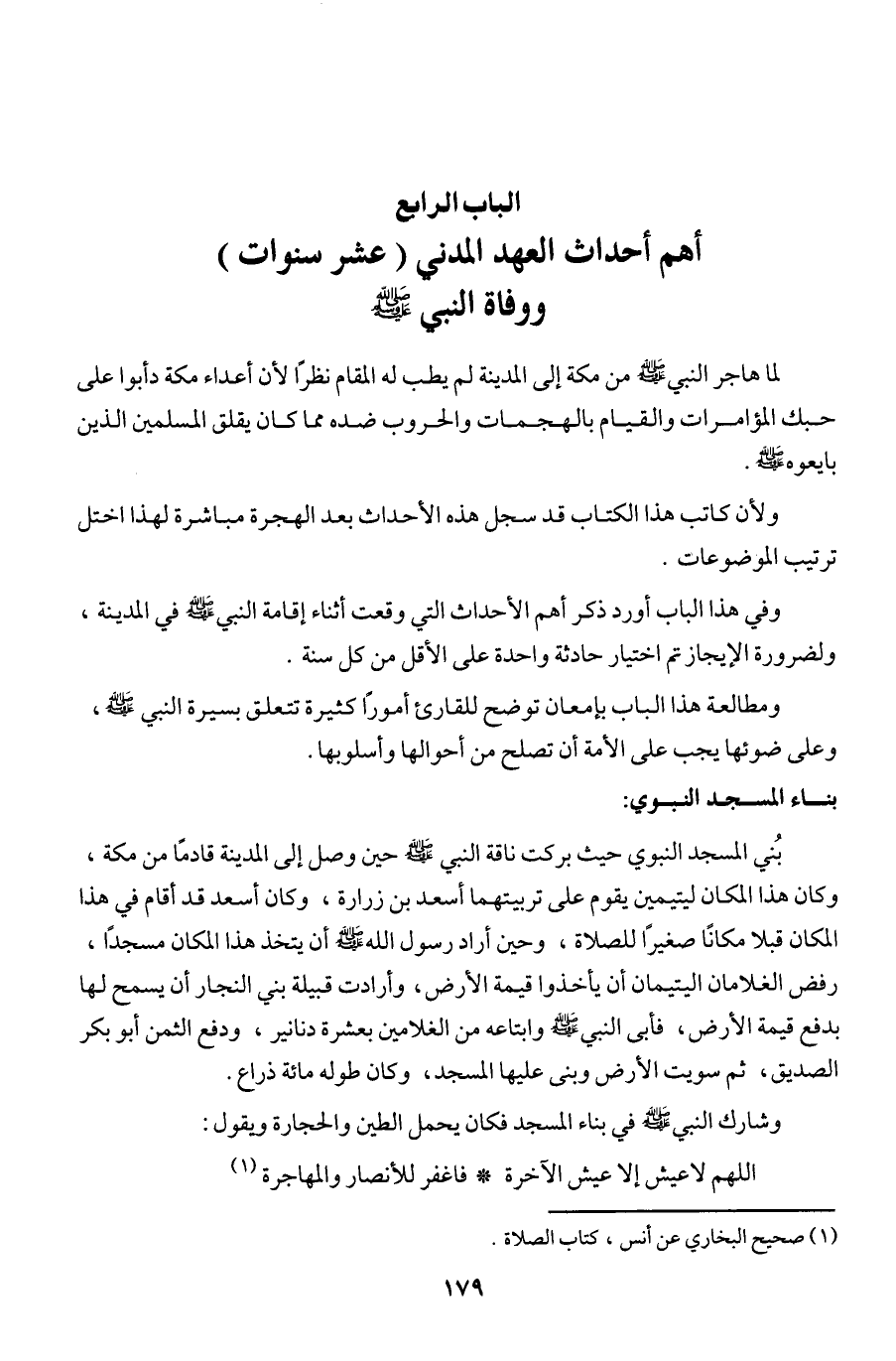وفي هذا الباب أورد ذكر أهم الأحداث التي وقعت أثناء إقامة النبي - صلى الله عليه وسلم - في المدينة، ولضرورة الإيجاز تم اختيار حادثة واحدة على الأقل من كل سنة.