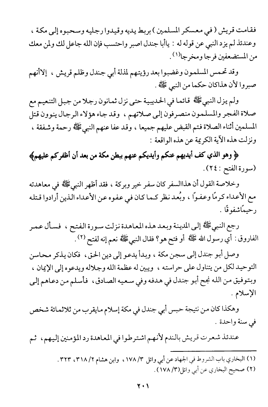 (¬1) البخاري باب الشروط في الجهاد عن أبي وائل 3/ 178، وابن هشام 2/ 318، 323.