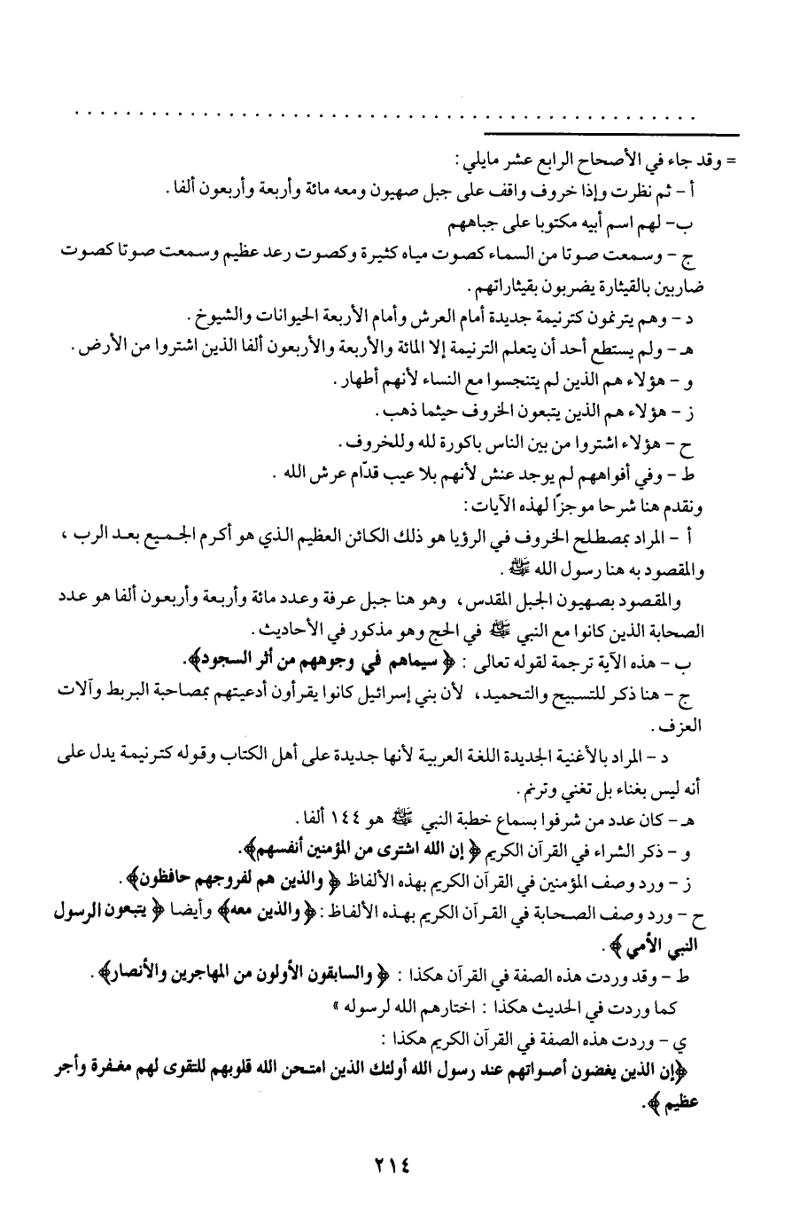 والمقصود بصهيون الجبل المقدس، وهو هنا جبل عرفة وعدد مائة وأربعة وأربعون ألفا هو عدد الصحابة الذين كانوا مع النبي - صلى الله عليه وسلم - في الحج وهو مذكور في الأحاديث.