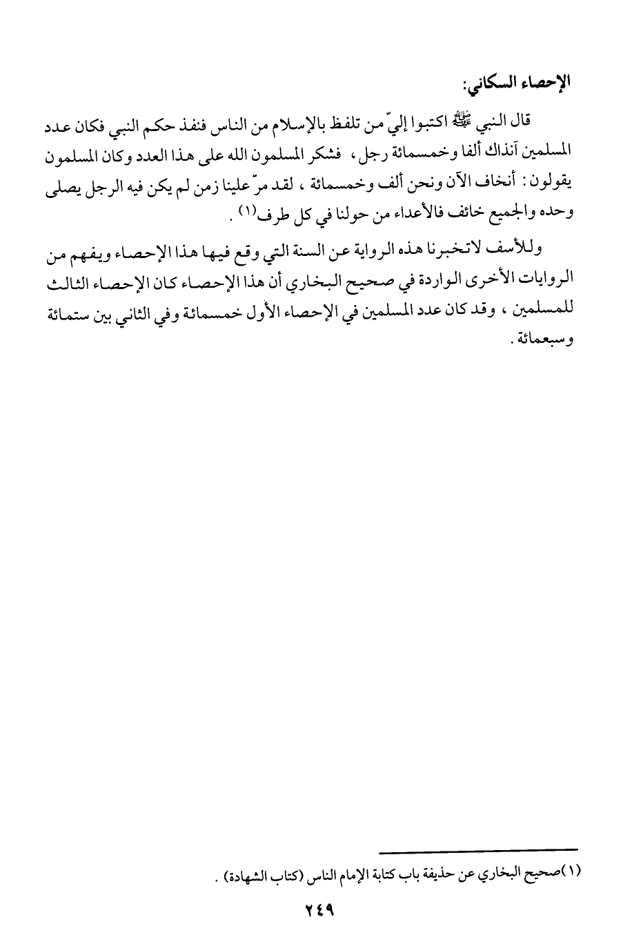 وللأسف لا تخبرنا هذه الرواية عن السنة التي وقع فيها هذا الإحصاء ويفهم من الروايات الأخرى الواردة في صحيح البخاري أن هذا الإحصاء كان الإحصاء الثالث للمسلمين، وقد كان عدد المسلمين في الإحصاء الأول خمسمائة وفي الثاني بين ستمائة وسبعمائة.