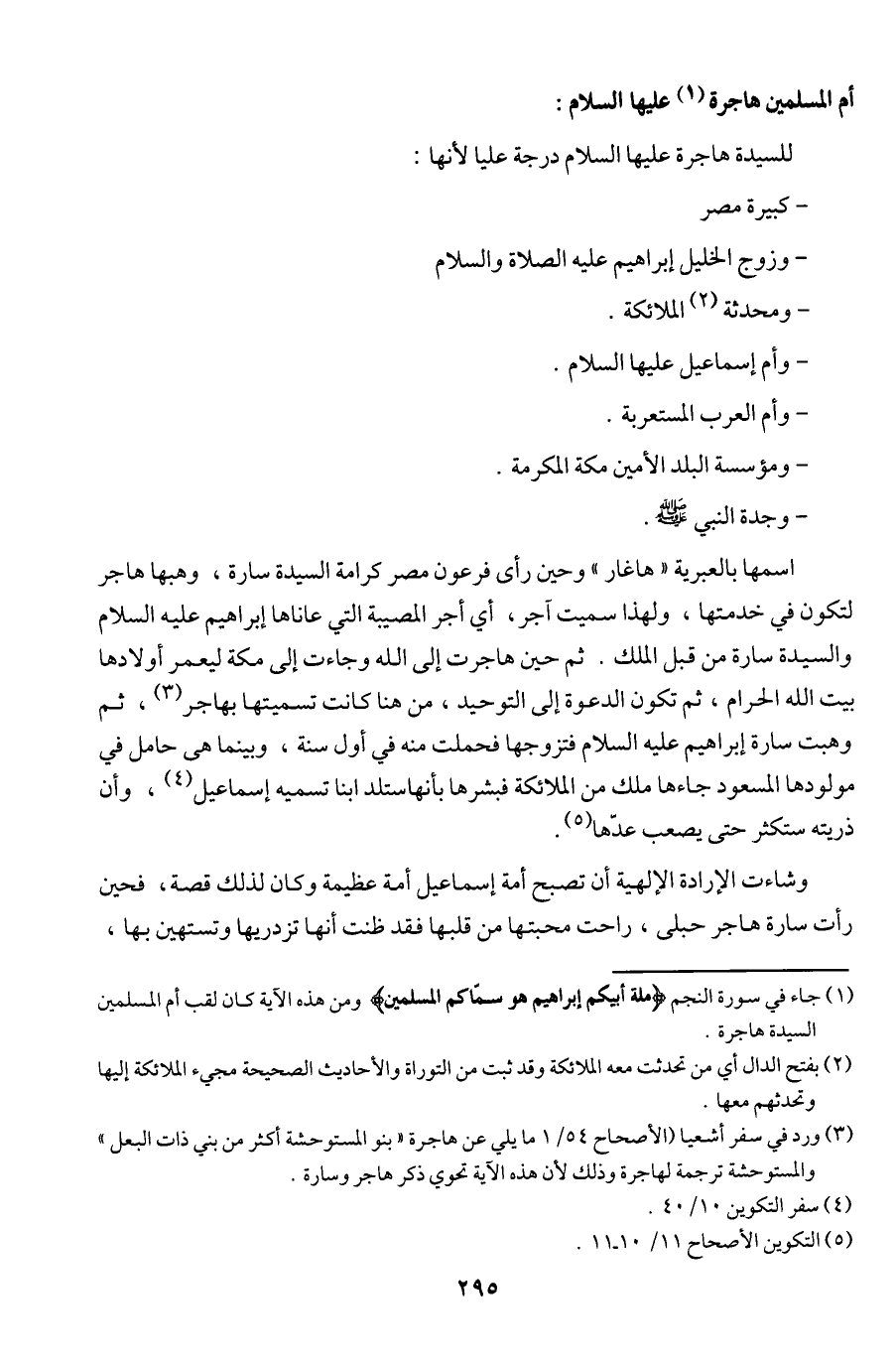 (¬1) جاء في سورة النجم {ملة أبيكم إبراهيم هو سماكم المسلمين} ومن هذه الآية كان لقب أم المسلمين السيدة هاجرة.
