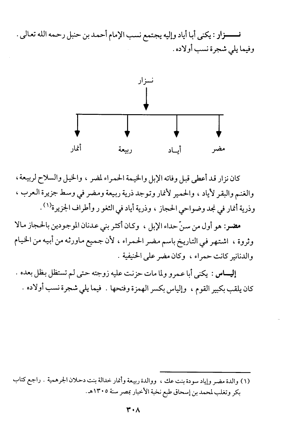 نزار: يكنى أبا أياد وإلىه يجتمع نسب الإمام أحمد بن حنبل رحمه الله تعالى. وفيما يلي شجرة نسب أولاده.
