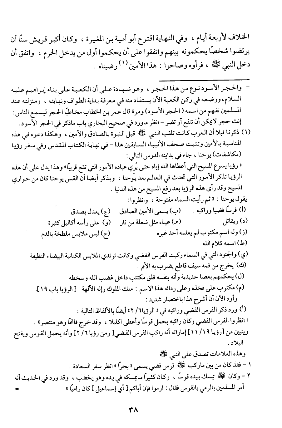 (¬1) ذكرنا قبلا أن العرب كانت تلقب النبي - صلى الله عليه وسلم - قبل النبوة بالصادق والأمين، وهكذا دعوه في هذه المناسبة بالأمين وتثبت صحف الأنبياء السابقين هذا - في نهاية الكتاب المقدس وفي سفر رؤيا (مكاشفات) يوحنا، جاء في بدايته الدرس التالي: