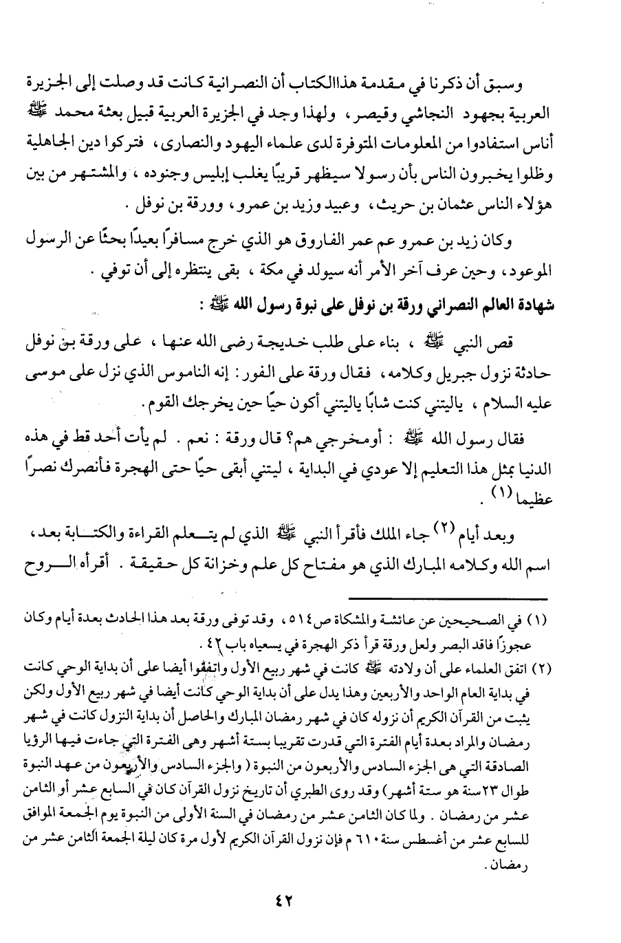 (¬1) في الصحيحين عن عائشة والمشكاة [ص:514]، وقد توفي ورقة بعد هذا الحادث بعدة أيام وكان عجوزا فاقد البصر ولعل ورقة قرأ ذكر الهجرة في يسعياه باب 42.