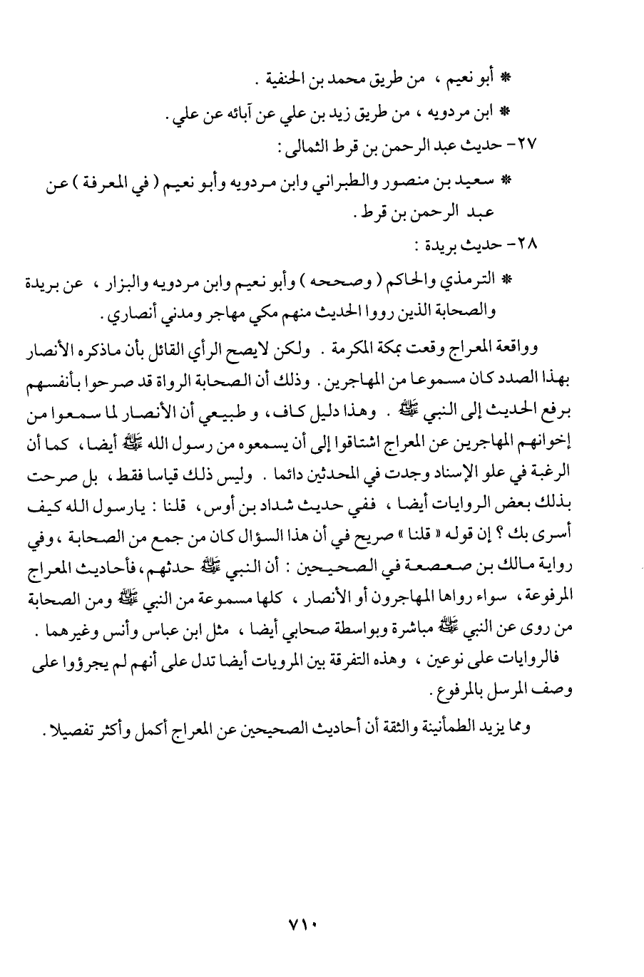 وواقعة المعراج وقعت بمكة المكرمة. ولكن لا يصح الرأي القائل بأن ما ذكره الأنصار بهذا الصدد كان مسموعا من المهاجرين. وذلك أن الصحابة الرواة قد صرحوا بأنفسهم برفع الحديث إلى النبي (ص). وهذا دليل كاف، وطبيعي أن الأنصار لما سمعوا من إخوانهم المهاجرين عن المعراج اشتاقوا إلى أن يسمعوه من رسول الله (ص) أيضا، كما أن الرغبة في علو الإسناد وجدت في المحدثين دائما. وليس ذلك قياسا فقط، بل صرحت بذلك بعض الروايات أيضا، ففي حديث شداد بن أوس، قلنا: يا رسول الله كيف أسري بك؟ إن قوله ((قلنا)) صريح في أن هذا السؤال كان من جمع من الصحابة، وفي رواية مالك بن صعصعة في الصحيحين: أن النبي (ص) حدثهم، فأحاديث المعراج المرفوعة، سواء رواها المهاجرون أو الأنصار، كلها مسموعة من النبي (ص) ومن الصحابة من روى عن النبي (ص) مباشرة وبواسطة صحابي أيضا، مثل ابن عباس وأنس وغيرهما.
