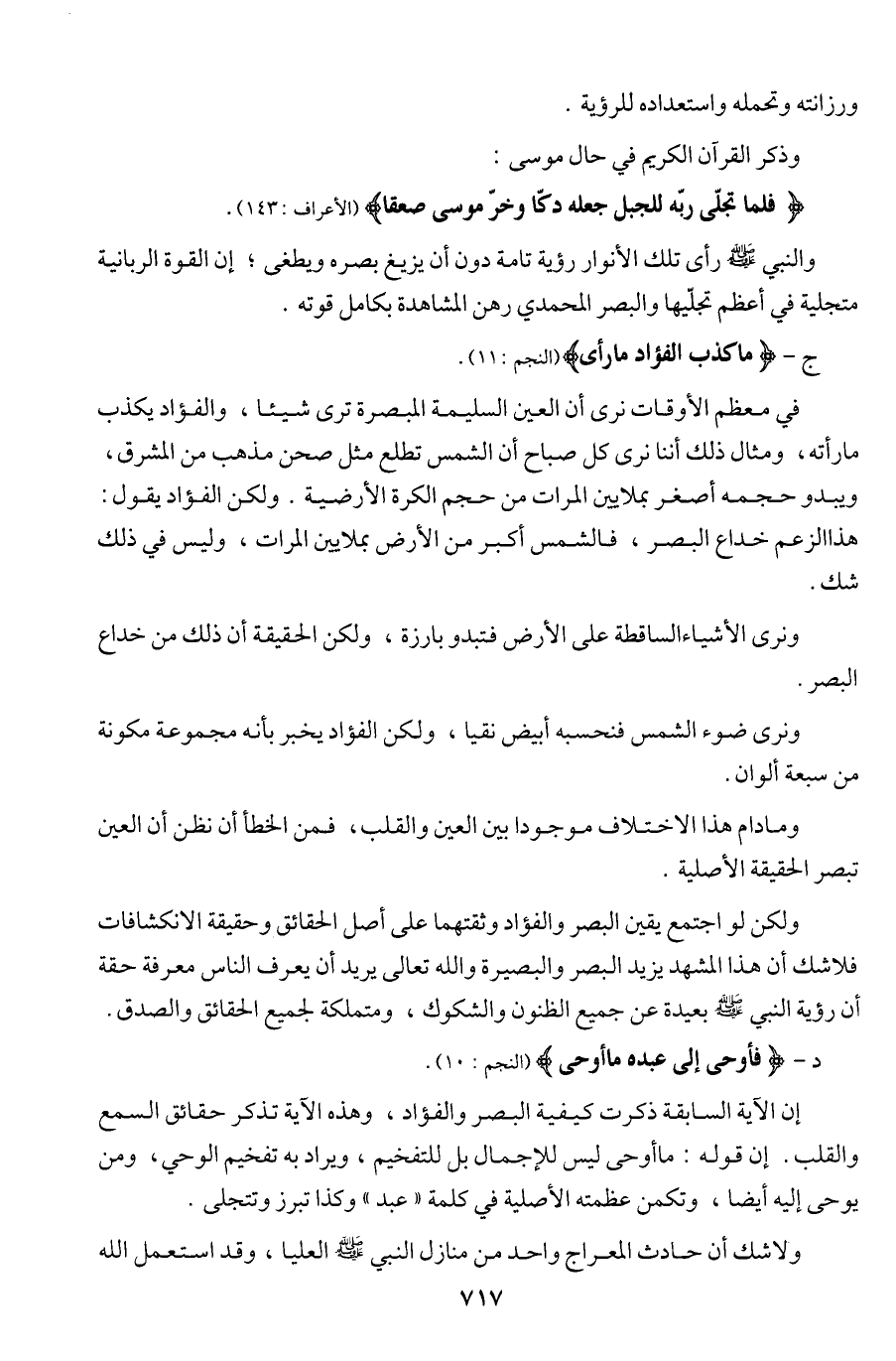 ولكن لو اجتمع يقين البصر والفؤاد وثقتهما على أصل الحقائق وحقيقة الانكشافات فلاشك أن هذا المشهد يزيد البصر والبصيرة والله تعالى يريد أن يعرف الناس معرفة حقة أن رؤية النبي (ص) بعيدة عن جميع الظنون والشكوك، ومتملكة لجميع الحقائق والصدق.