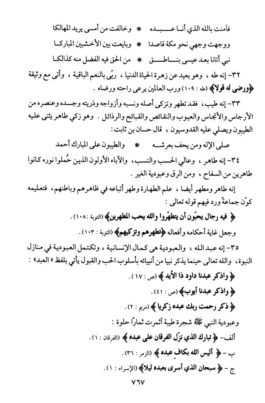 35 - إنه عبد الله، والعبودية هي كمال الإنسانية، وتكتمل العبودية في منازل النبوة، والله تعالى حينما يذكر نبيا من أنبيائه بأسلوب الحب والقبول يأتي بلفظ ((العبد)):