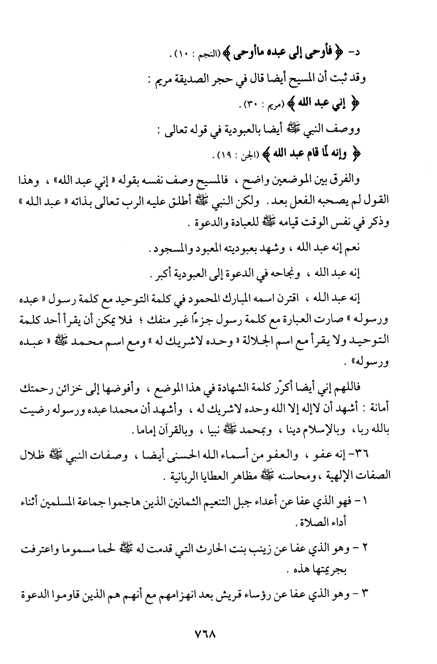 وقد ثبت أن المسيح أيضا قال في حجر الصديقة مريم: {إني عبد الله} (مريم: 30). ووصف النبي (ص) أيضا بالعبودية في قوله تعالى: