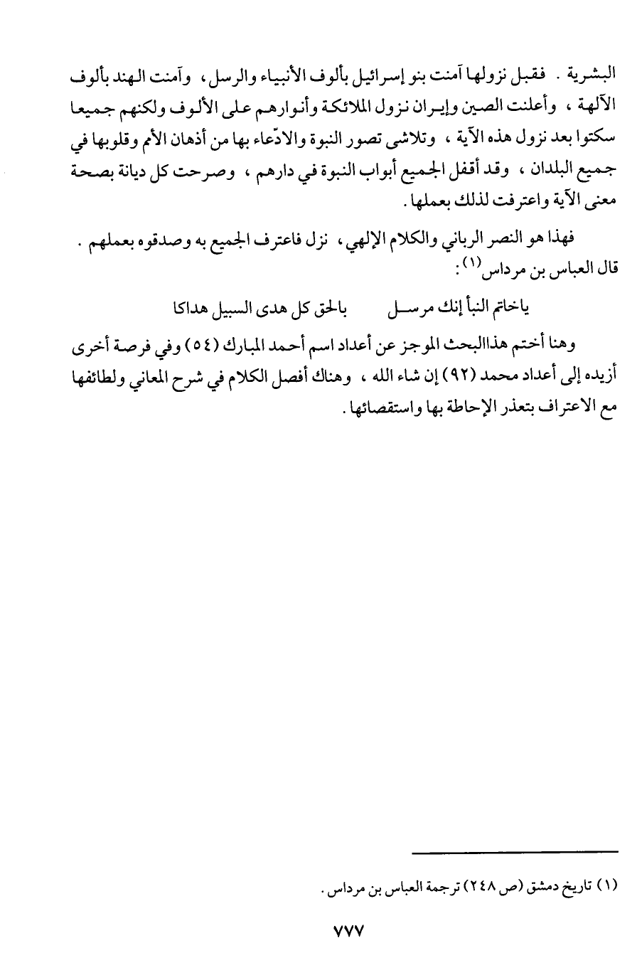 (¬1) تاريخ دمشق (ص 248) ترجمة العباس بن مرداس.