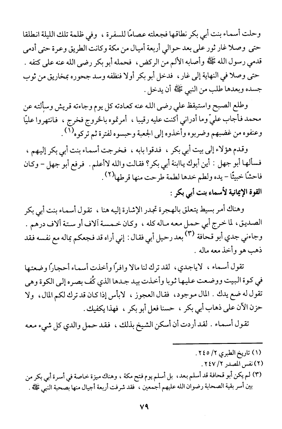 (¬3) لم يكن أبو قحافة قد أسلم بعد، بل أسلم يوم فتح مكة، وهناك ميزة خاصة في أسرة أبي بكر من بين أسر بقية الصحابة رضوان الله عليهم أجمعين، فقد شرفت أربعة أجيال منها بصحبة النبي - صلى الله عليه وسلم -.