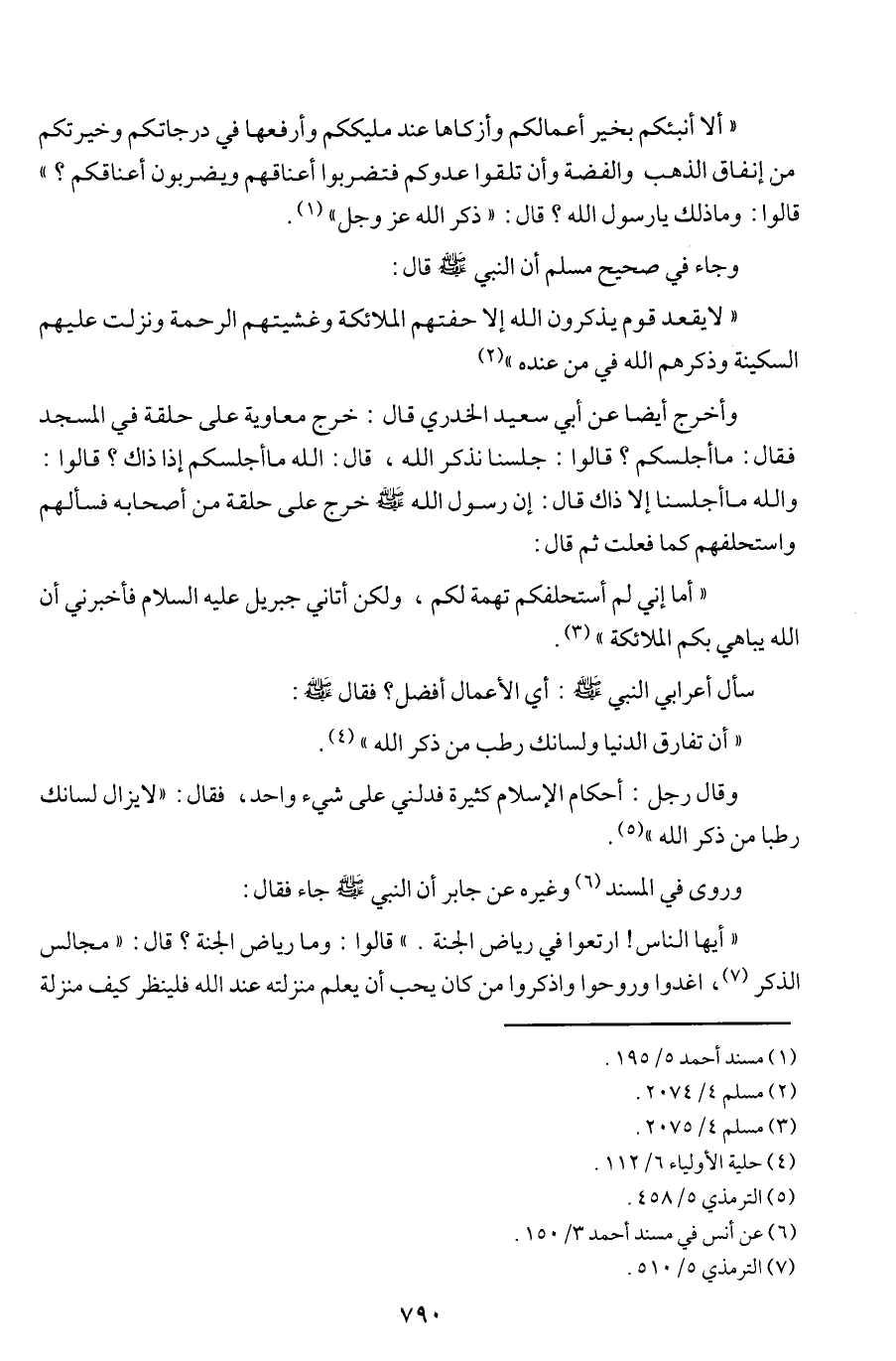 ((ألا أنبئكم بخير أعمالكم وأزكاها عند مليككم وأرفعها في درجاتكم وخيرتكم من إنفاق الذهب والفضة وأن تلقوا عدوكم فتضربوا أعناقهم ويضربون أعناقكم؟)) قالوا: وما ذلك يا رسول الله؟ قال: ((ذكر الله عز وجل)) (¬1). وجاء في صحيح مسلم أن النبي (ص) قال: