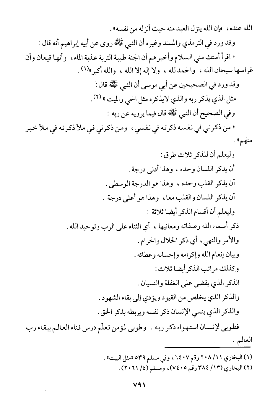 وبيان إنعام الله وإكرامه وإحسانه وعطائه. وكذلك مراتب الذكر أيضا ثلاث: