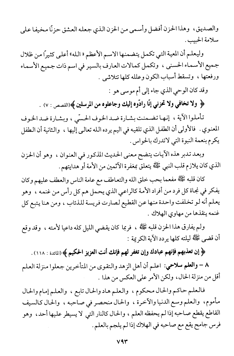 8 - والعلم سلاحي: اعلم أن أهل الزهد والتقوى من المتأخرين جعلوا منزلة العلم أقل من منزلة الحال، ولكن الأمر على العكس من هذا.